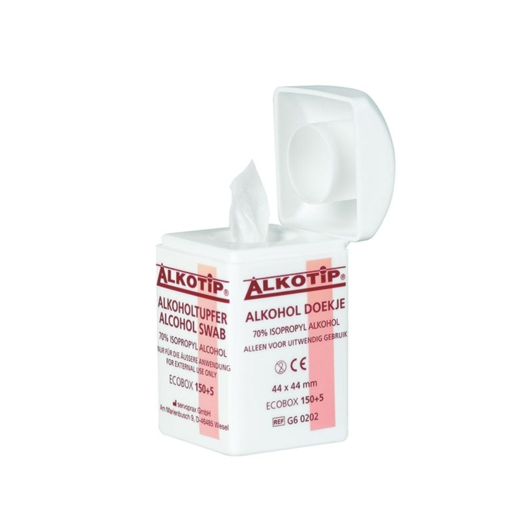 Deze Alkotip alcoholdoekjes in dispenser zijn ideaal voor snelle en effectieve desinfectie van huid, materialen en kleine oppervlakken. Ze zijn gedrenkt in 70% isopropylalcohol en verpakt in een handige dispenser met sluitdeksel om uitdroging te voorkomen. Elk doekje is pluisvrij, laat geen resten achter en is ook zeer effectief voor het verwijderen van natte of kleverige epoxyhars. Geschikt voor medisch gebruik zoals het reinigen van de huid voor injecties of het ontsmetten van instrumenten en gladde oppervlakken.