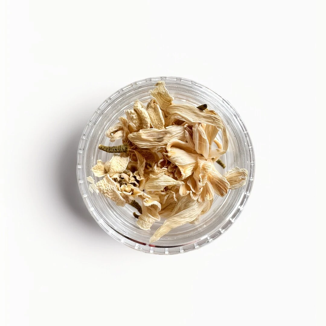 Het gedroogd sneeuwklokje is de geboortebloem van januari en staat symbool voor hoop, zuiverheid en een nieuw begin. Deze gedroogde bloemetjes bloeien maar in een hele beperkte periode. Ze worden met zorg geteeld en op natuurlijke wijze gedroogd, zonder kleurstoffen of bewerkingen. Ideaal voor verwerking in hars als subtiel accent of betekenisvolle vulling in een herinneringsjuweel. Dankzij hun fijne structuur en zachte uitstraling zijn sneeuwklokjes geliefd bij wie houdt van een tedere, minimalistische afwerking.